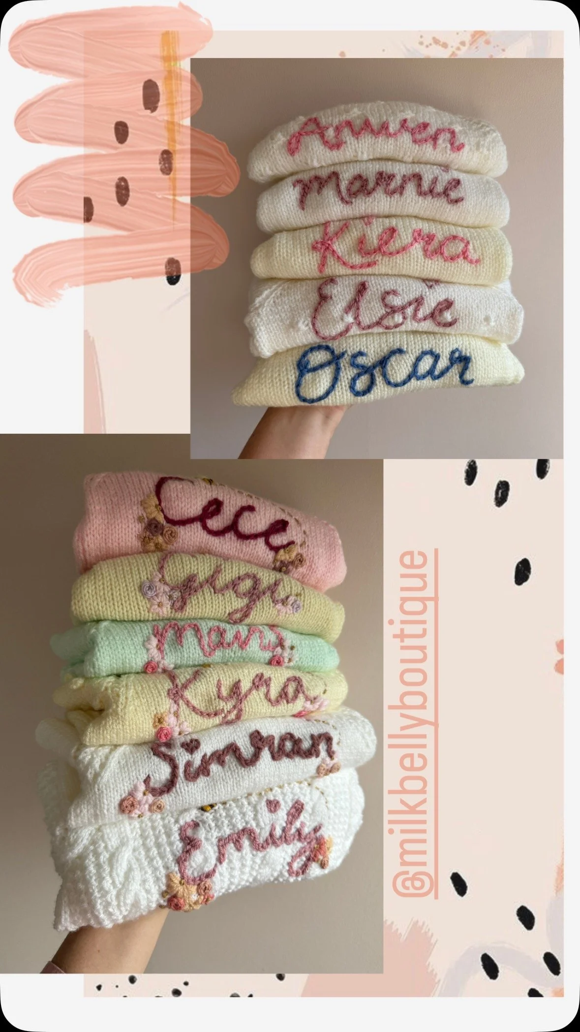 Welcome to Milk Belly Boutique where I hand lovingly embroider beautiful, handmade knitwear for your tiny humans, into heirloom pieces that are treasured, displayed & cherished by you.