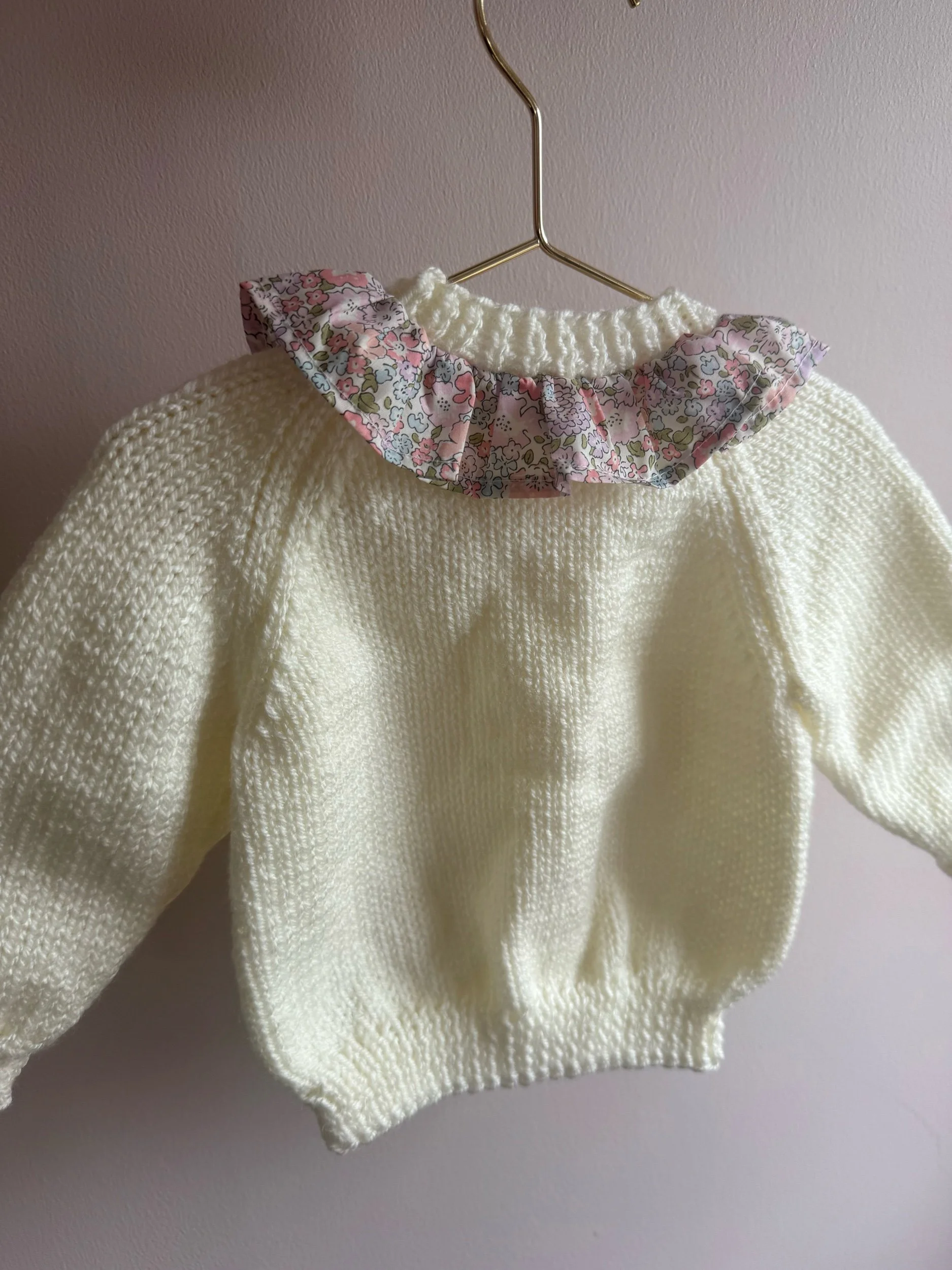0-3 months cream liberty collar | Hand personalised baby cardigan