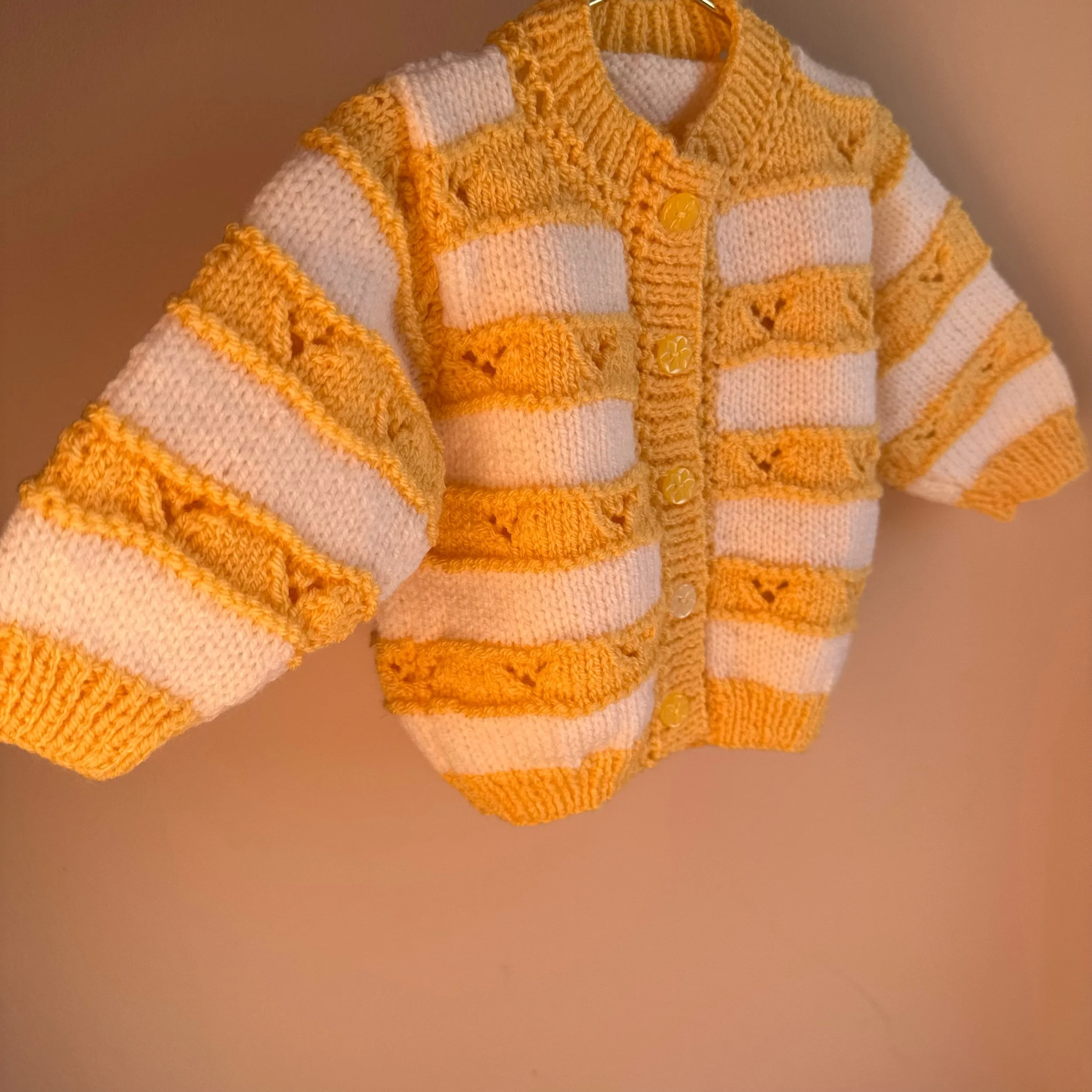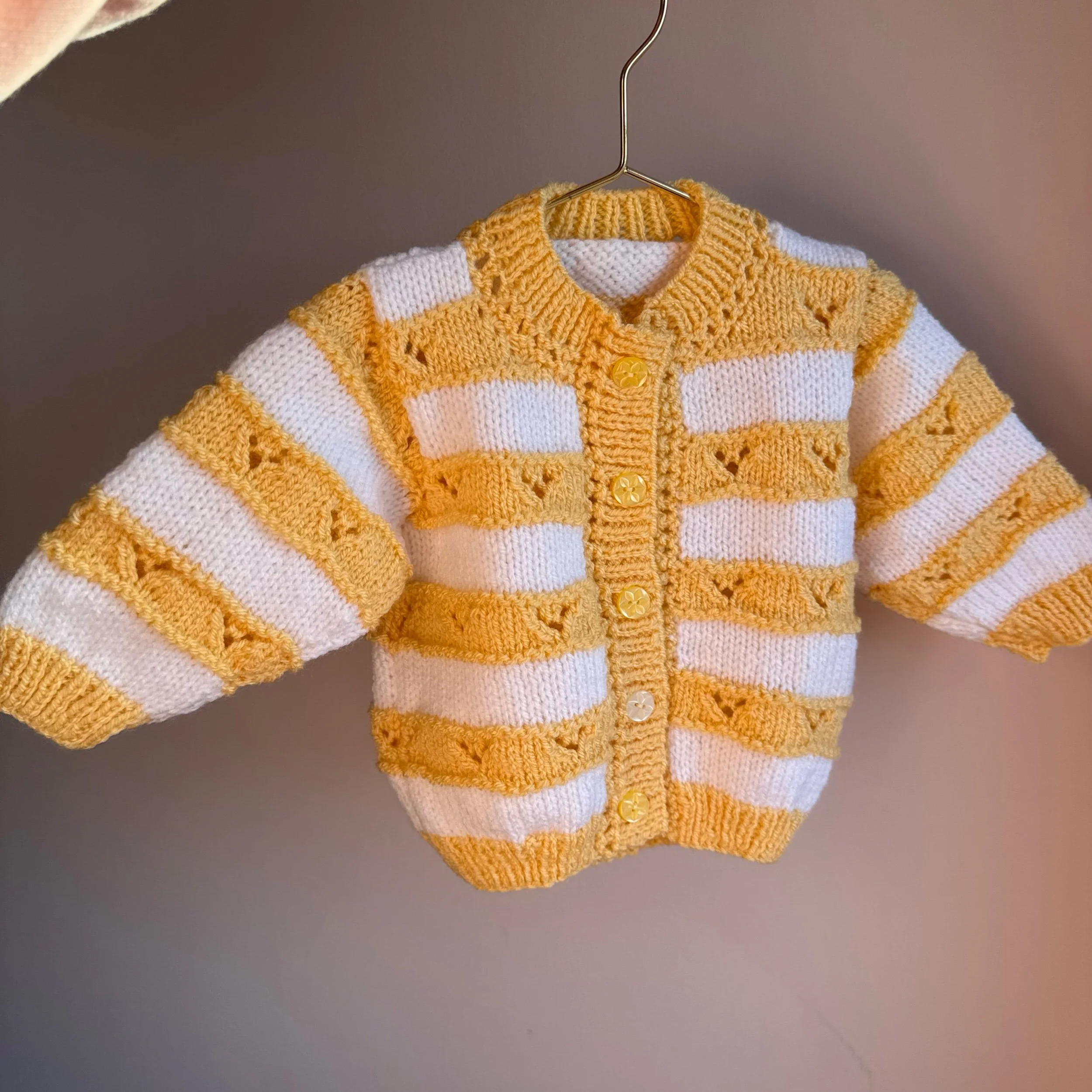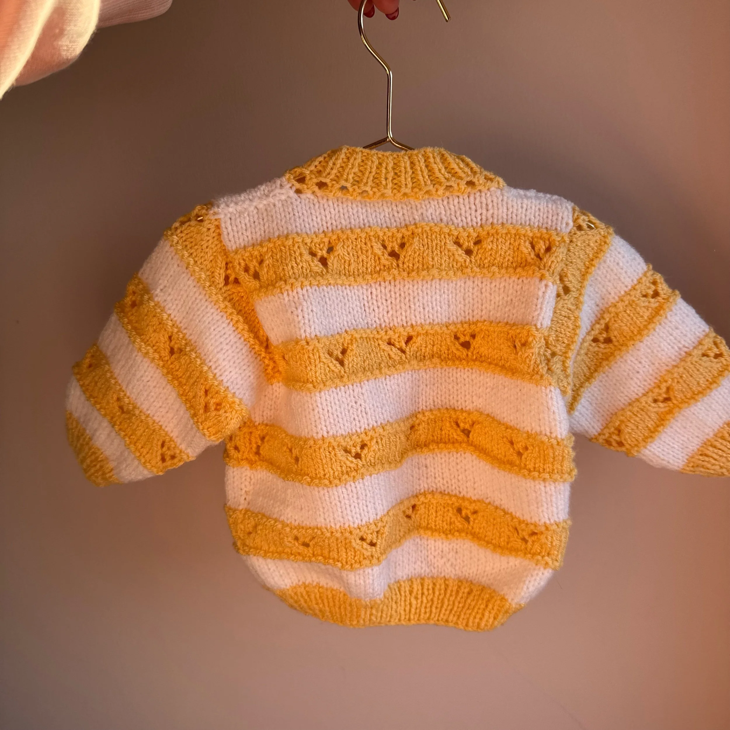 3-6 months yellow stripe | Hand personalised baby cardigan